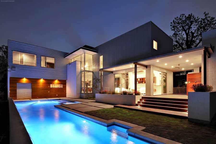 Цвет металлики в экстерьере прекрасного загородного дома стиля хай-тек