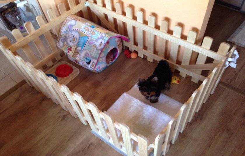 В квартирах нередко устанавливают манежи для небольших собак. Когда туалет в вольере находится в одном месте, питомец приучается к порядку. У него появляется свое пространство. Благодаря устройству вольера собака знает, где ее лежанка и место кормления. При этом она не станет метить в разных углах комнаты.