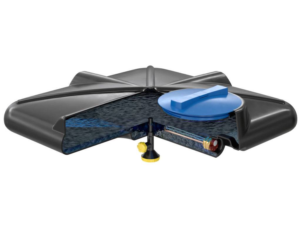 Пластиковые баки изготавливаются из пищевого полиэтилена. Их собственный вес небольшой, вода в них не «цветет», поэтому большинство владельцев дачных участков выбирает именно такие емкости.