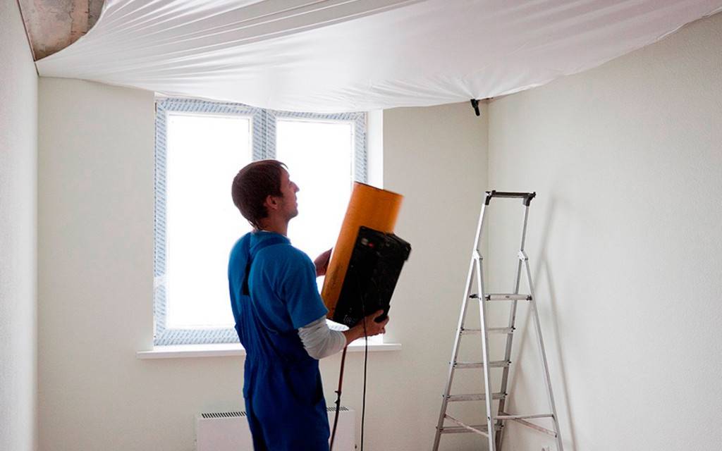 Если монтаж потолка будет в помещении, из которого нет возможности убрать вещи, то стоит рассматривать тканевые варианты, поскольку при монтаже пленочных изделий, как уже говорилось, применяются тепловые пушки – температура может навредить мебели.