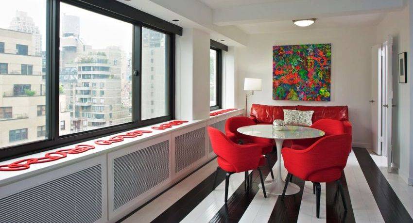 - Придают подоконному пространству с теплообменником эстетичный внешний вид, закрывая некрасивые радиаторы. Данное применение особенно актуально для чугунных батарей.