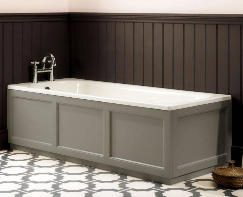 Самый простой и доступный способ – обшивка, входящая в комплект пристенной ванны. Дизайн ее прост, обязательно повторяет цвет чаши и ее конфигурацию. Поэтому если монтируют асимметричную сложную ванну, лучше всего обойтись готовым комплектом.