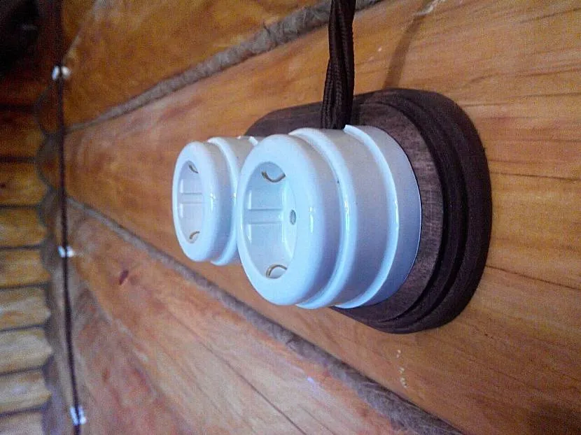Электрика в бане из дерева требует заземления: все нагревательные приборы (печи, бойлеры), розетки в моечной комнате и проводка должны быть заземлены самым тщательным образом. В светильниках рабочее напряжение не должно быть больше 24 В. Все выключатели и розетки следует выносить за пределы парилки в предбанник и прочие помещения.
