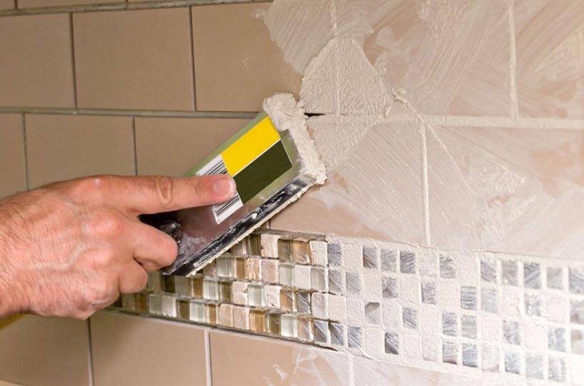 - Самым сложным процессом считают аккуратные затирания внутреннего угла. Подобные трудности возникают при затирке мозаики. Она состоит из мелкой плитки, размеры которой составляет 15 х 15 см. Выполнить такую ювелирную работу могут профессиональные кафельщики.