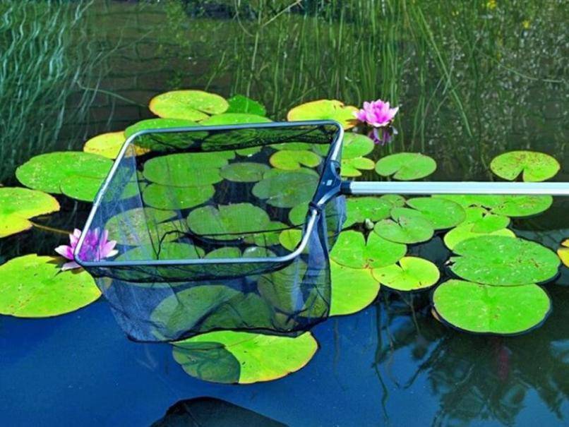 В снабжённом гидросооружением пруду часто менять воду затруднительно. Крупный мусор, плавающий по поверхности, отлавливают сачками с длинной ручкой. Запустить процесс очищения водоёма позволяет посадка водорослей и заселение его моллюсками. Чем сильнее будет распылять струю форсунка насоса, тем больше кислорода будет получать пруд — это тоже положительно сказывается на свежести воды.