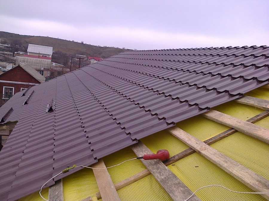 - Если используется утепленная кровля, внутри обрешеточного слоя помещают «кровельный пирог» из паро- и теплоизоляции.