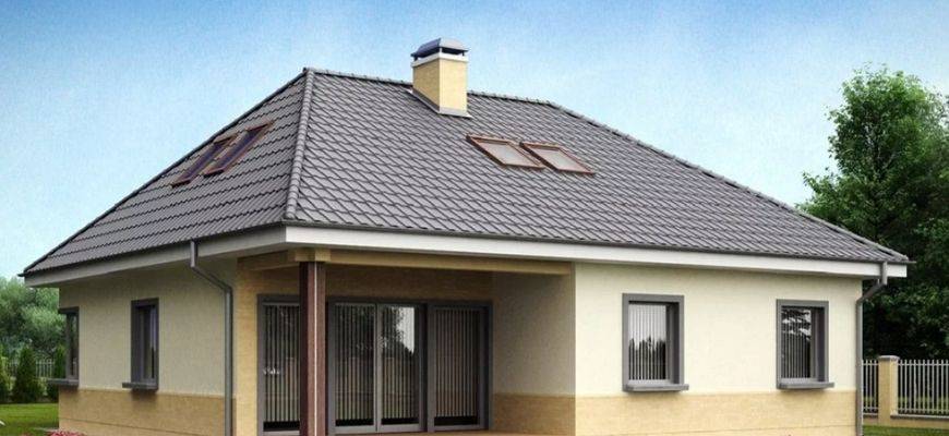 Четырехскатная вальмовая крыша оригинально выглядит, защищает фасад от осадков и не боится сильного ветра. Под ней можно обустроить мансарду или чердак, но их площадь будет меньше, чем в двускатном варианте. Минус конструкции – сложность и трудоемкость возведения.