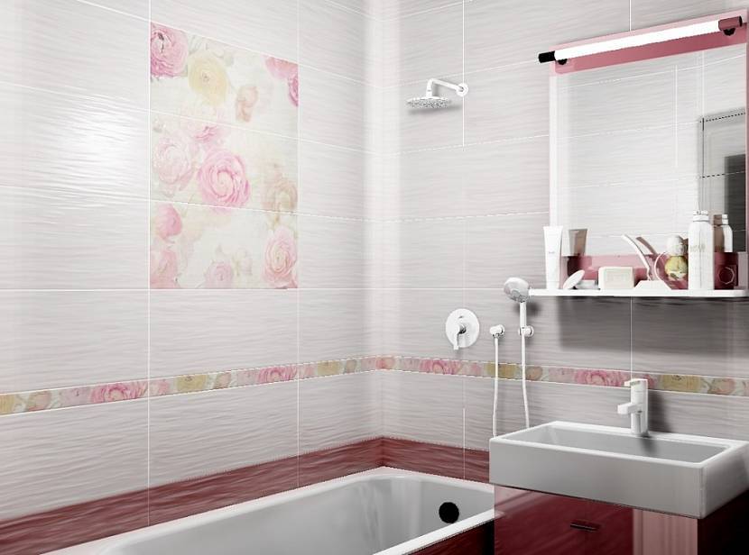 Если не хочется останавливаться только на одном цвете, то можно использовать несколько. Например, можно взять светлые плиты, розоватые, кремовые или бежевые и дополнить их яркими оттенками, например, тем же розовым или желтым, но уже более глубокого тона.