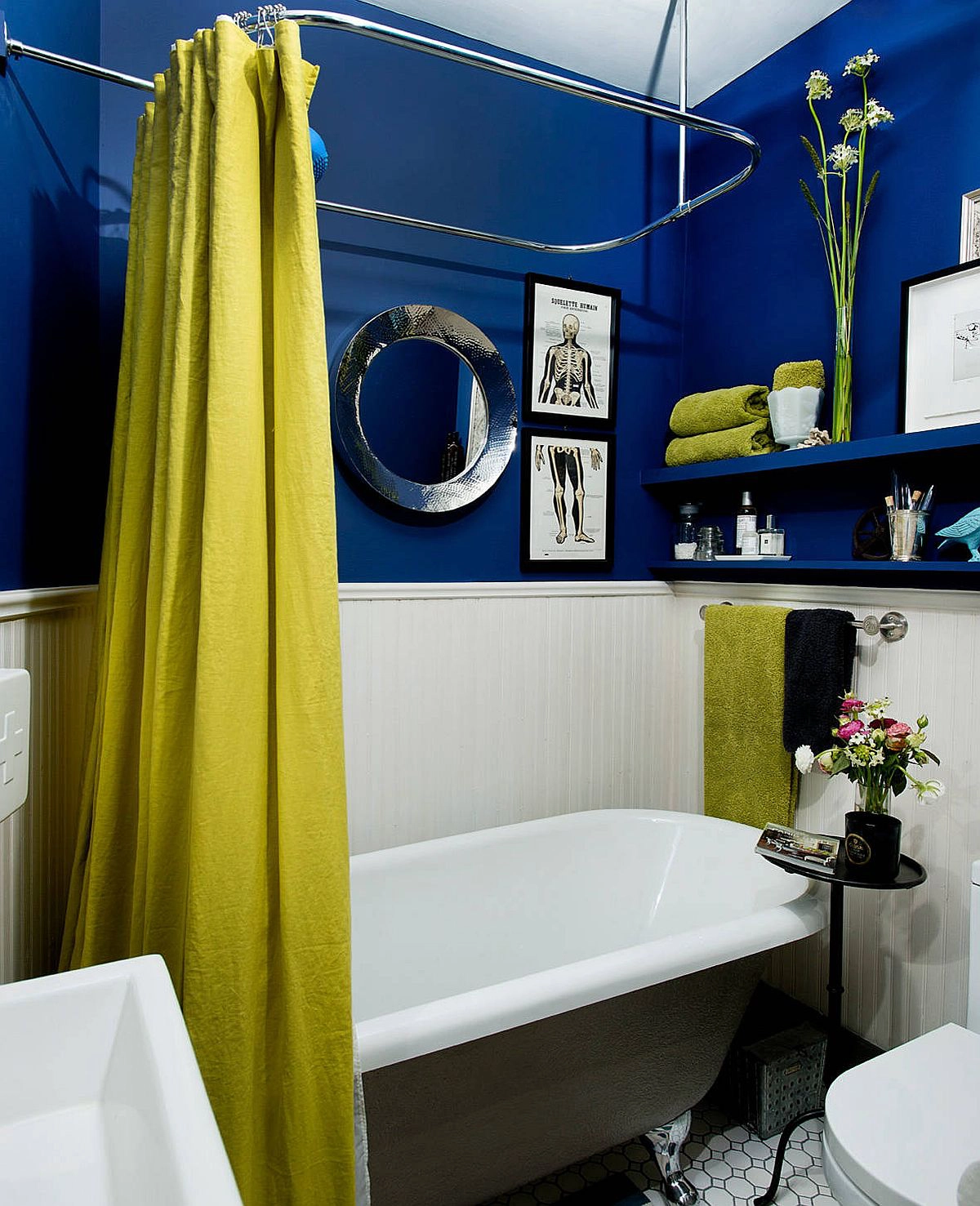 Яркие и темные оттенки при правильном использовании также позволяют оригинально оформить небольшую ванную.