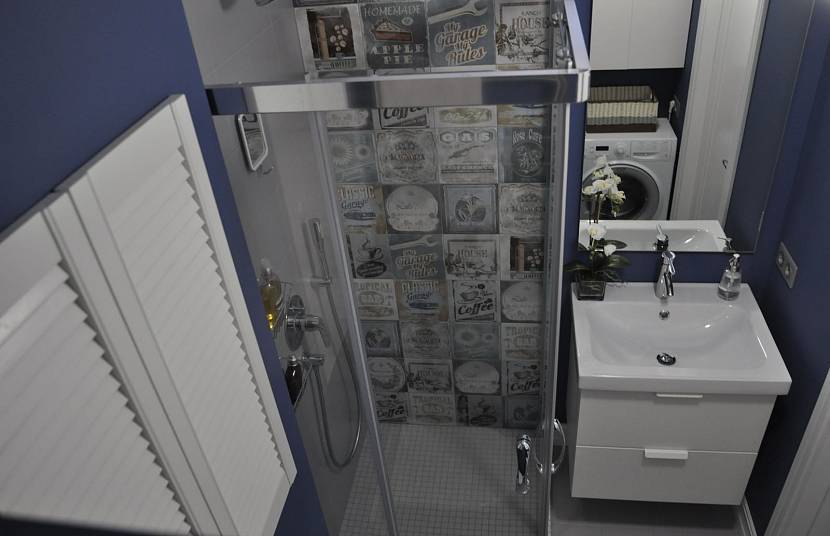 В зависимости от того, где расположена дверь, унитаз и душевую кабину можно расположить в дальних углах, а небольшую стиральную машину – при входе. Размеры душевой кабины тоже должны быть самые маленькие. В противном случае, в ванной останется мало свободного места.