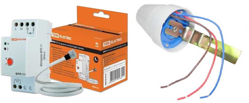 Фотореле для уличного освещения с выносным датчиком (слева) и встроенным (справа)