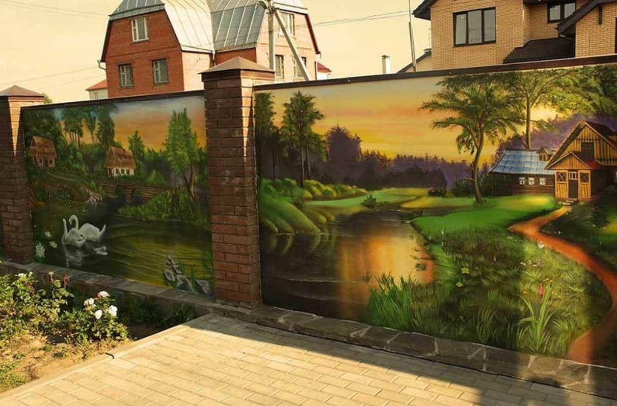 Во-вторых, хотя ПВХ и является довольно стойким материалом к различным видам воздействий, всё же большое полотно имеет некую «вандальную привлекательность», против которой защиты практически нет. А значит, область её использования ограничена. Лучше украшать заборы в закрытых, охраняемых дачных поселках или частных домах с хорошими соседями. В любом случае, это решение довольно интересное, которое в умелых руках может стать настоящим шедевром.