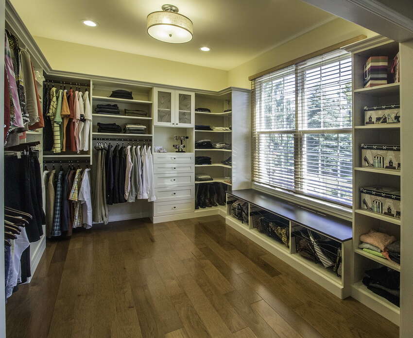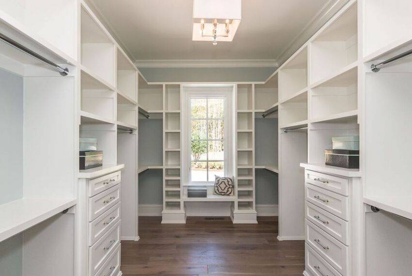 - Если гардеробная с окном, то сделать так, чтобы солнечный свет не портил вещи.