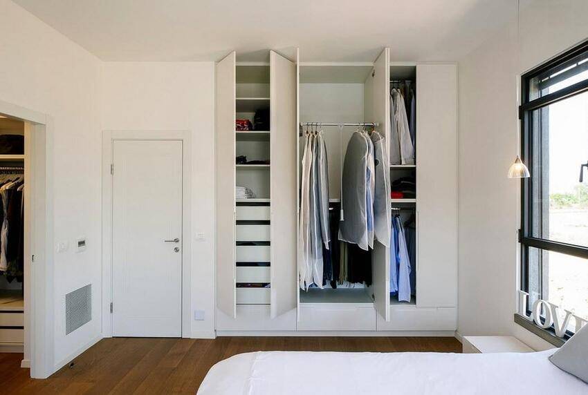 Для организации гардеробной в спальне можно использовать различные варианты.