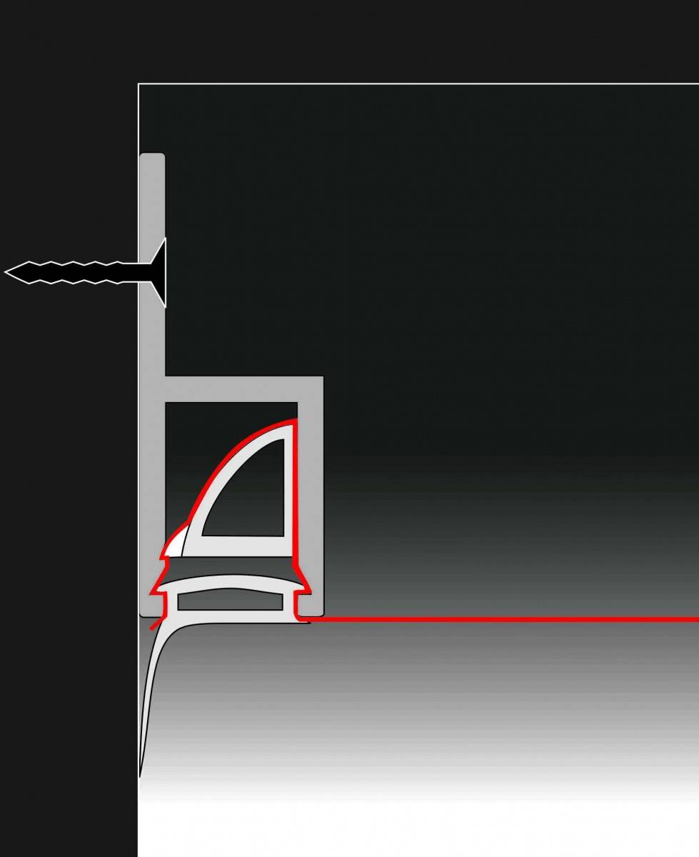 Если гарпун изготавливается из ПВХ, то направляющий монтажный профиль делается из алюминиевого сплава. Его форма и конфигурация должна полностью повторять конфигурацию ПВХ вставки.
