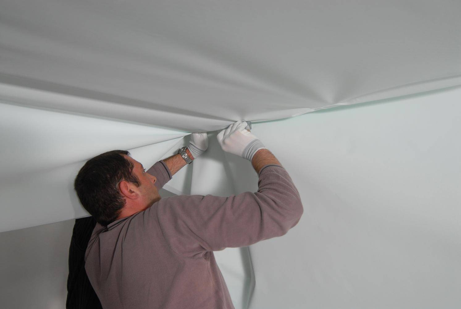 - После натяжения на плоскости полотна не образуются складки, и оно не растянется.