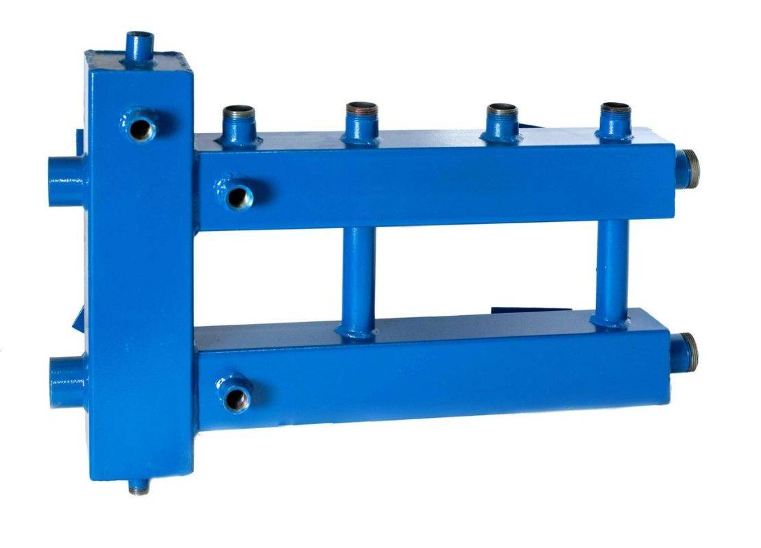 Гидравлическая стрелка, к которой планируется подключать более 3 контуров нагрева, как правило, изготавливается вместе с коллекторами — подающим и обратным. Распределитель устанавливается таким образом, чтобы выровнять давление между ними.