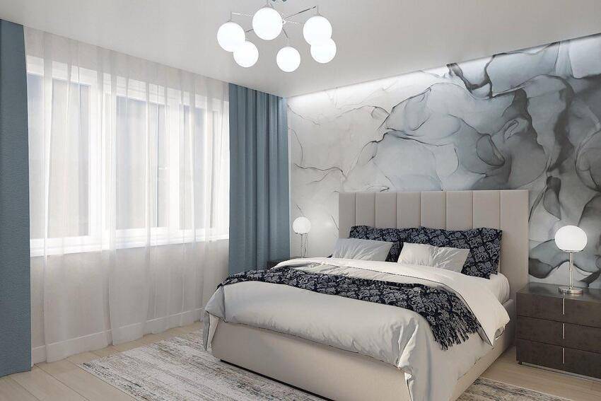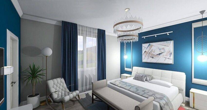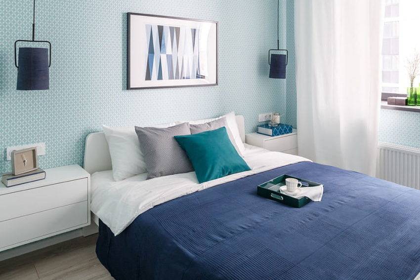 Синие тона в спальне создадут уютную и расслабляющую атмосферу.