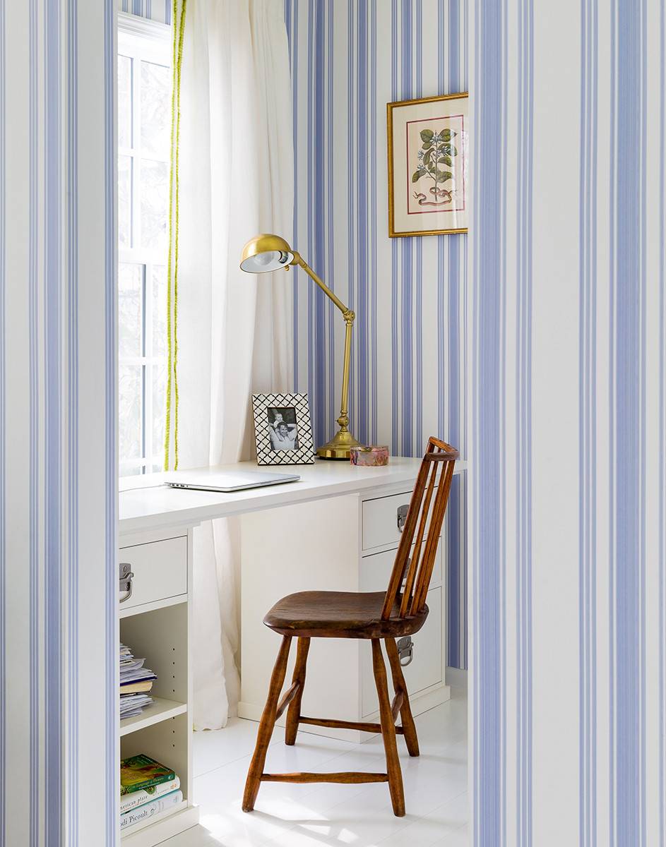 Голубые обои в интерьере берут на себя выполнение сразу нескольких функций