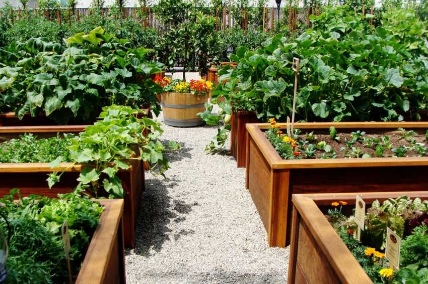 Собрать такие модели несложно. Заранее определитесь с местоположением, высотой и материалом ограждения для высоких грядок. Вот несколько интересных фотопримеров оформления огорода с использованием таких конструкций: