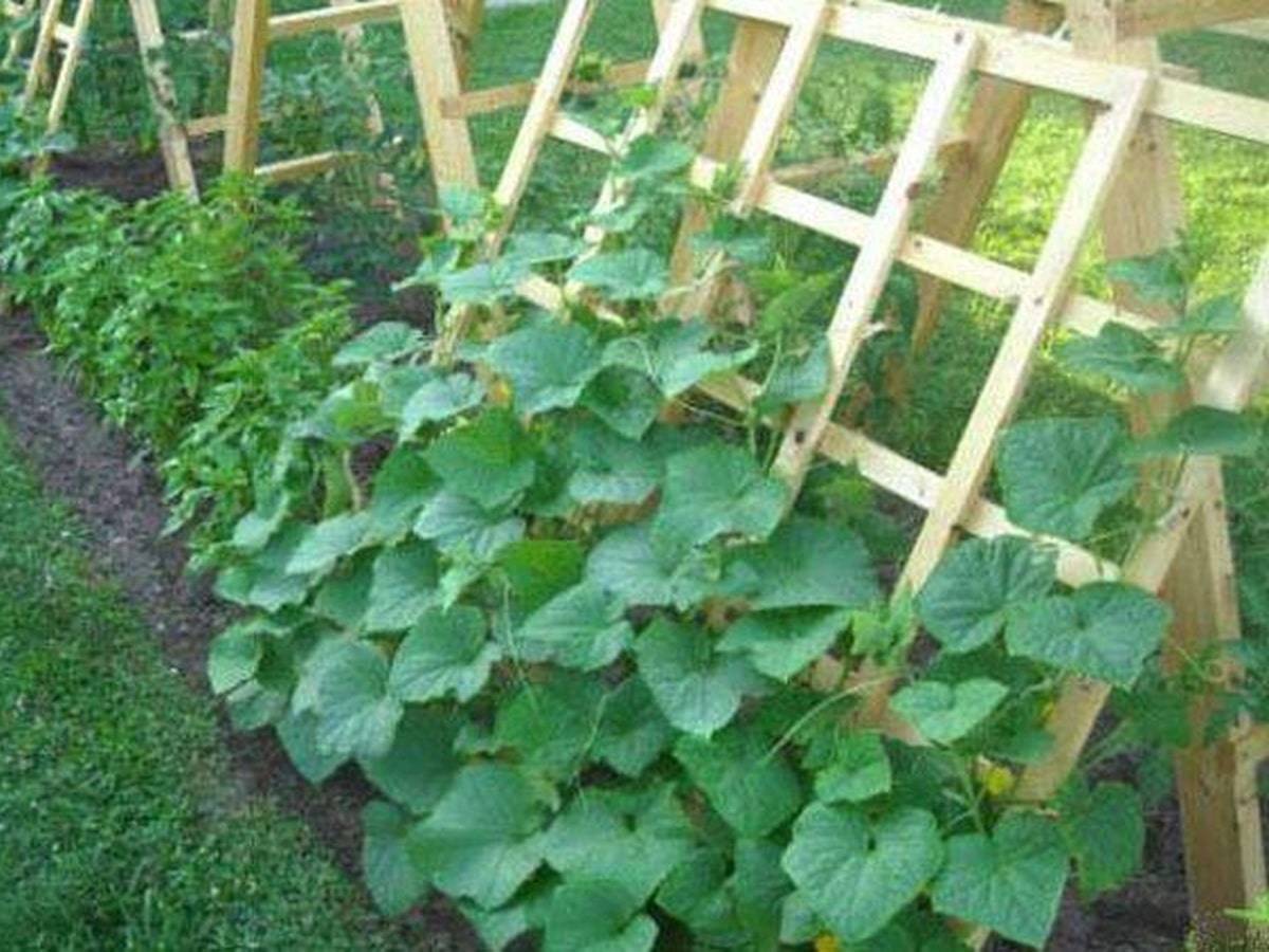 Очень распространенный вариант на участках с небольшой площадью. Как известно, огурцы дают сильные плети. Поэтому чтобы сэкономить пространство, проще пустить их вверх и закрепить на устойчивой опоре. У таких грядок довольно много преимуществ: