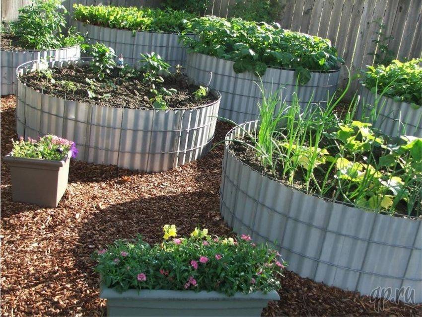 Оцинкованный металл. Прочность и долговечность материала привлекает немало внимания к нему. При выборе оцинковки для возведения высоких грядок не забывайте, что материал быстро нагревается на солнце, поэтому подходит для тенистых участков.