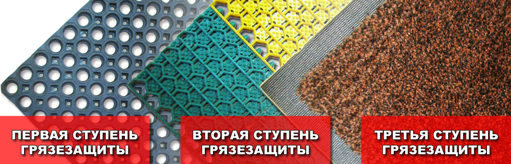 В качестве второй ступени очистки используются резиновые дорожки, коврики и модульные покрытия.
