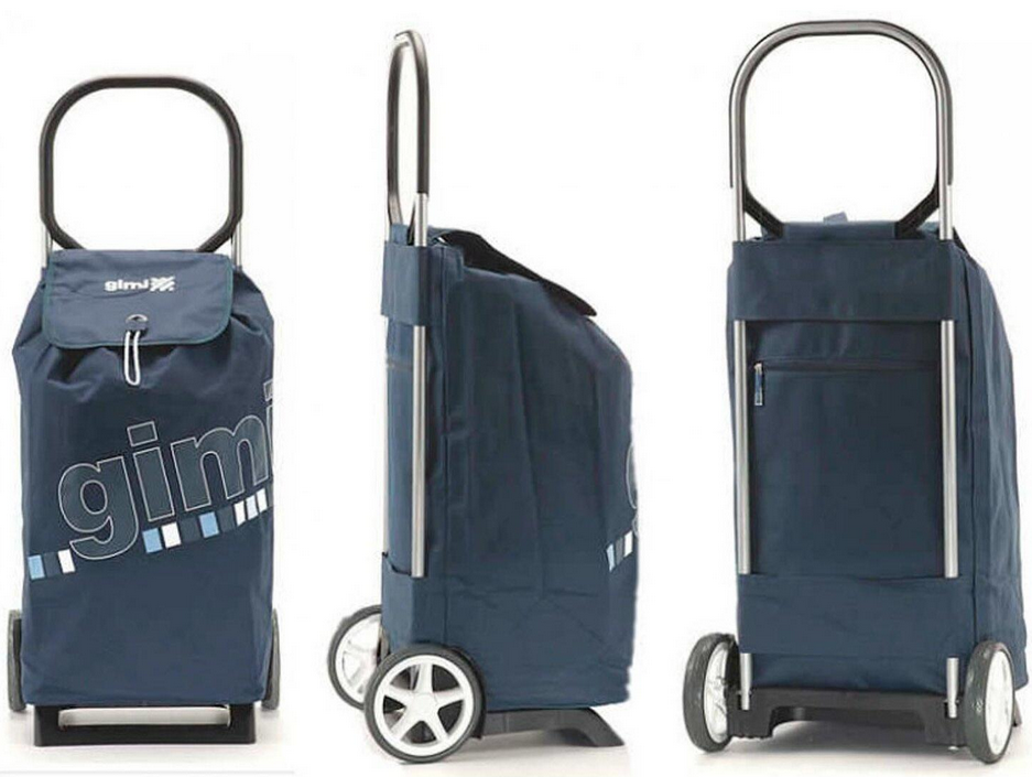 - GIMI Tris Optical. Трехеолесная конструкция позволяет свободно «шагать» по лестнице. Объем 56 л при весе 3,4 кг. Предусмотрена планка для подвеса к магазинной тележке.