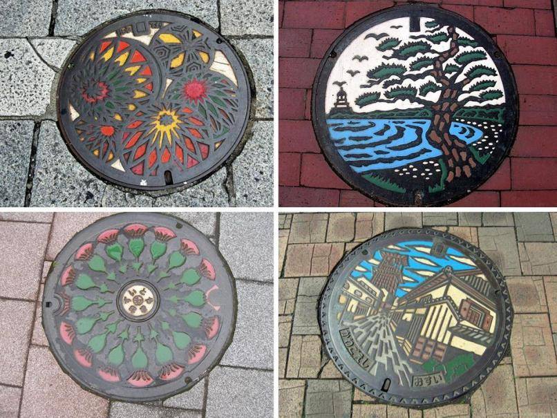 Вопрос декорации люка канализации решается автоматически, если изначально приобрести оригинальную крышку с узорами. Подобное изделие имеет рисунок или орнамент, который может быть подчеркнут с помощью красок. Традиция изготовления из чугуна декоративных канализационных люков особенно сильна в Японии.