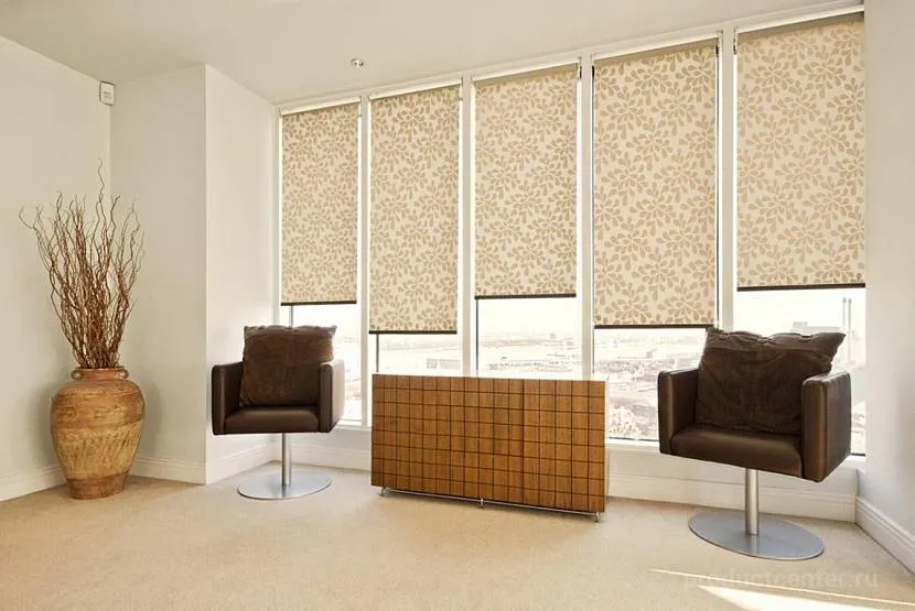 В случае текстильных шторок, следует обратить внимание на природные мотивы, имитацию льняной ткани, растительные и зеленые оттенки.