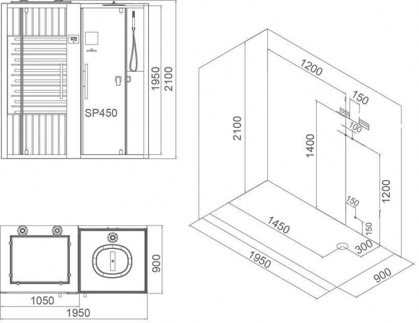 На стенах кабинки монтируются приборы с закрытым ТЭНом, чтобы не было опасности случайного ожога в тесном пространстве.