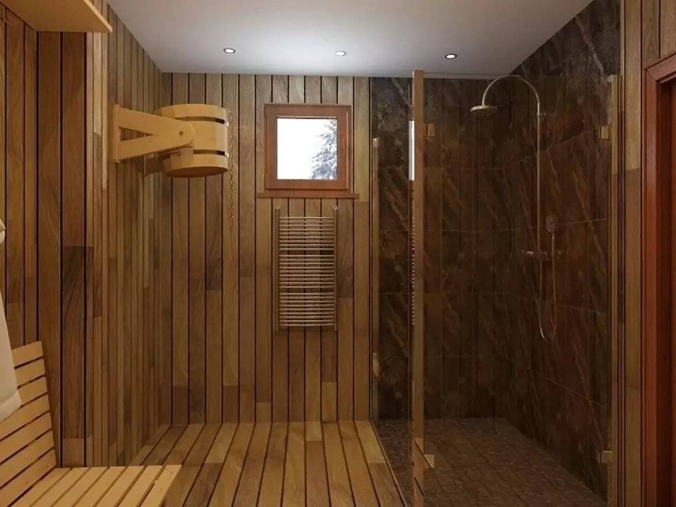 Дерево — традиционный материал для отделки парилки и других пространств. Площадь значения не имеет, оно идеально и для дизайна небольшой бани внутри, и для просторных домов.