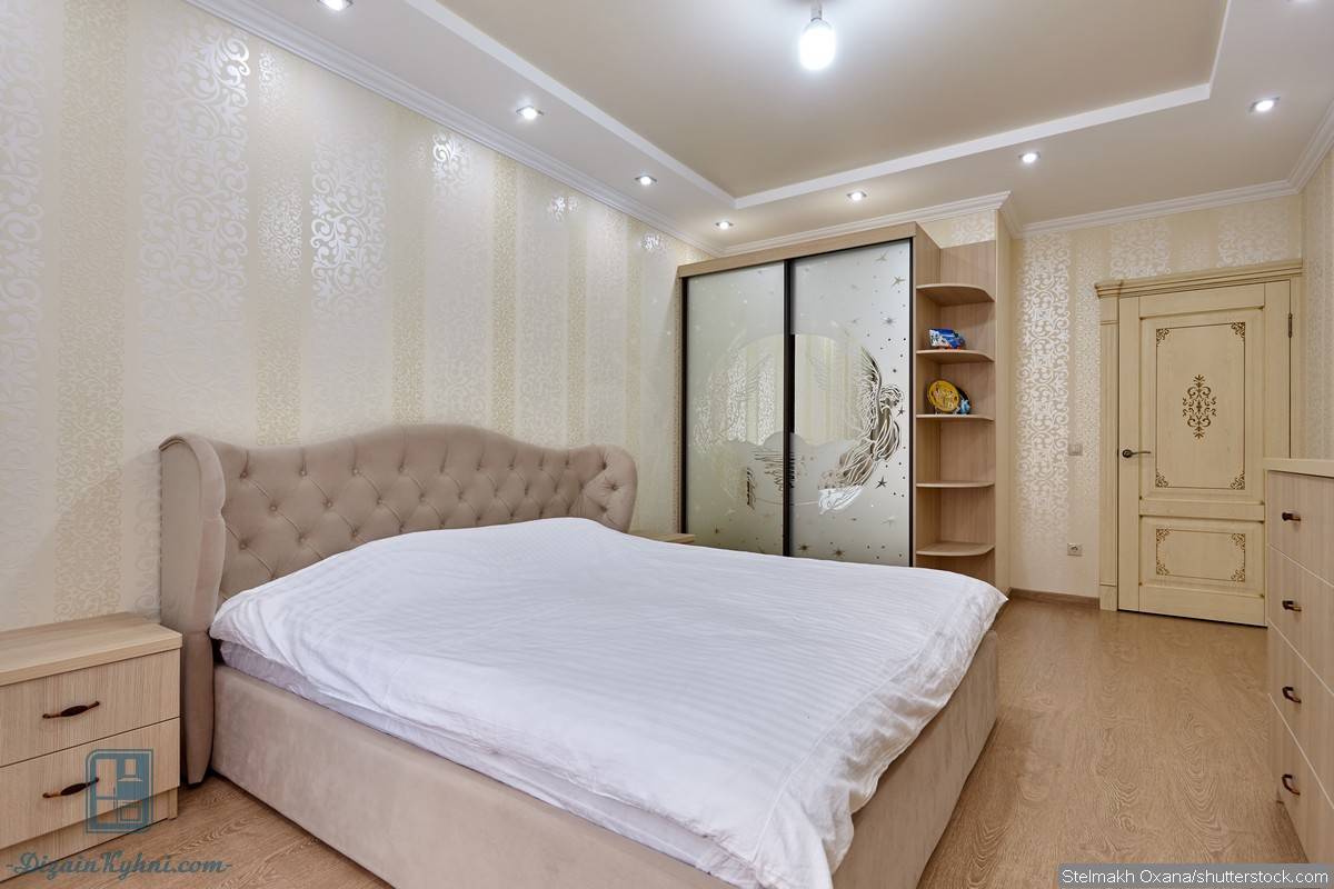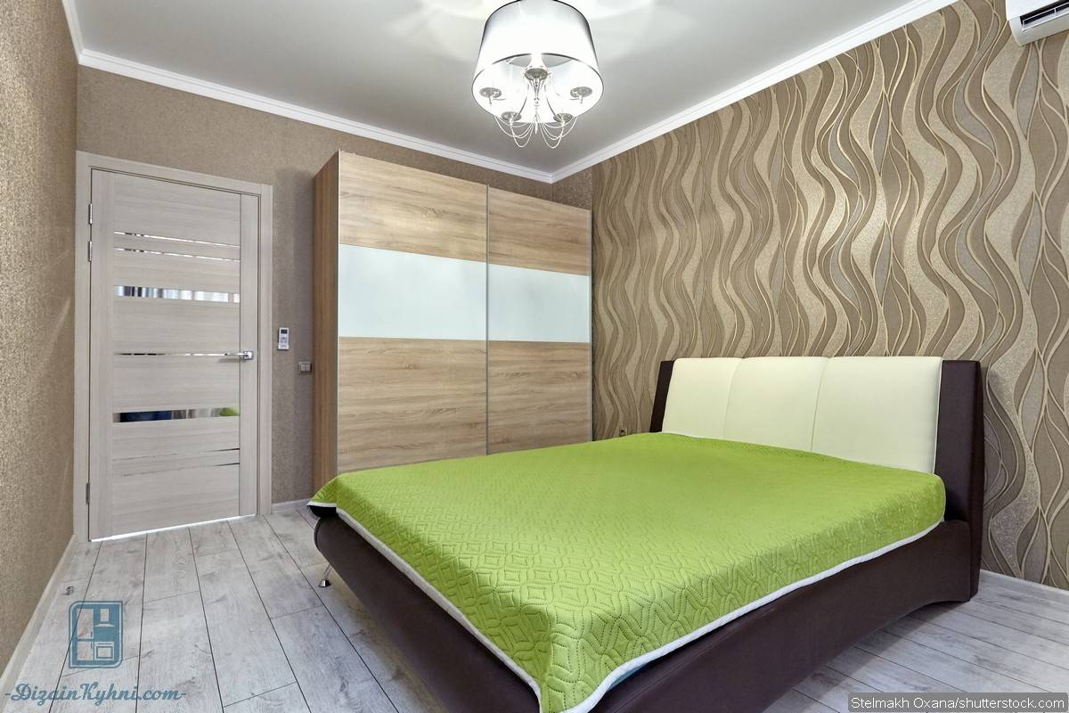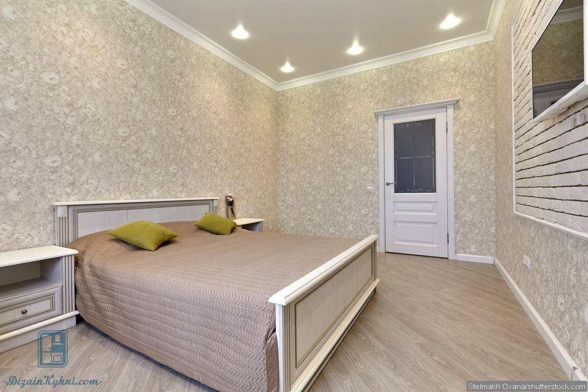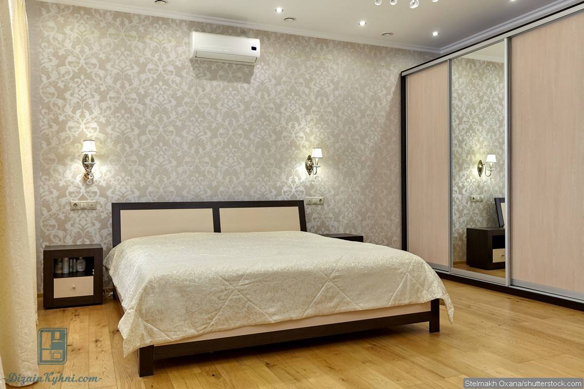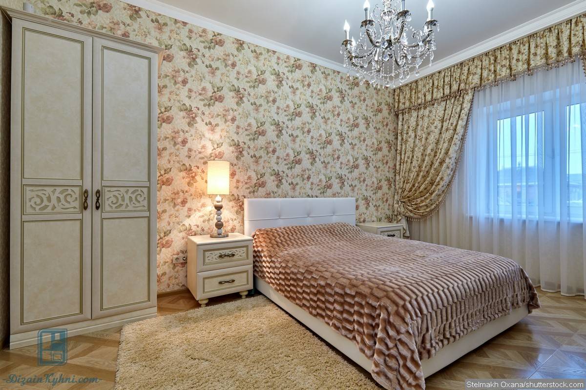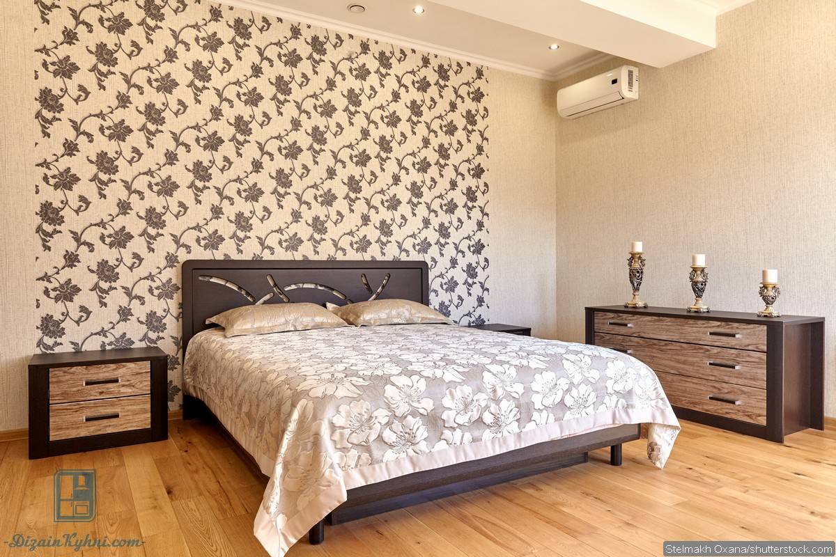 Выбирать обои нужно, отталкиваясь от габаритов вашей спальной комнаты. Так вы сможете правильно обыграть пространство. В большой комнате можно поклеить только однотонные обои или сделать аккуратное панно с помощью фотообоев или обоев с узорами.