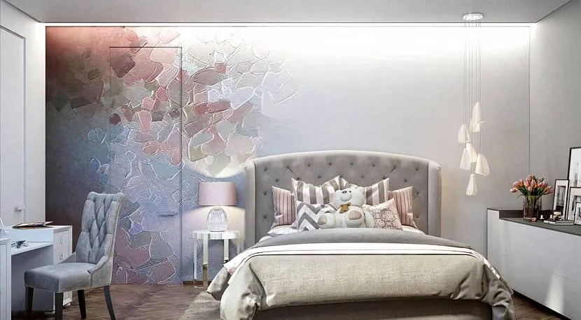 Яркие элементы в комнате для сна необходимы для оживления пастельных стен и напольного покрытия. Наличие цветных картин, текстиля или аксессуаров добавят красок и избавят помещение от излишней строгости.