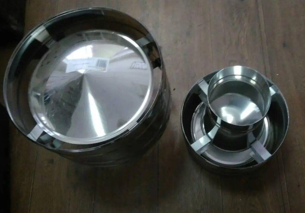 - Центральную внутреннюю часть можно сделать из готовой нержавеющей трубы, она будет одеваться как насадка на дымоход.
