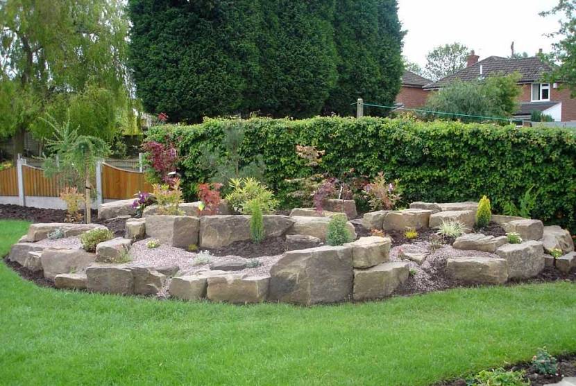Сначала нужно определиться с местом его расположения и размером. Можно соорудить его как на ровной поверхности, так и украсить имеющийся на участке склон.