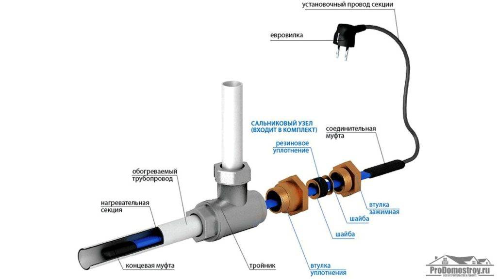 Виды тройников для монтажа греющего кабеля внутри водопровода