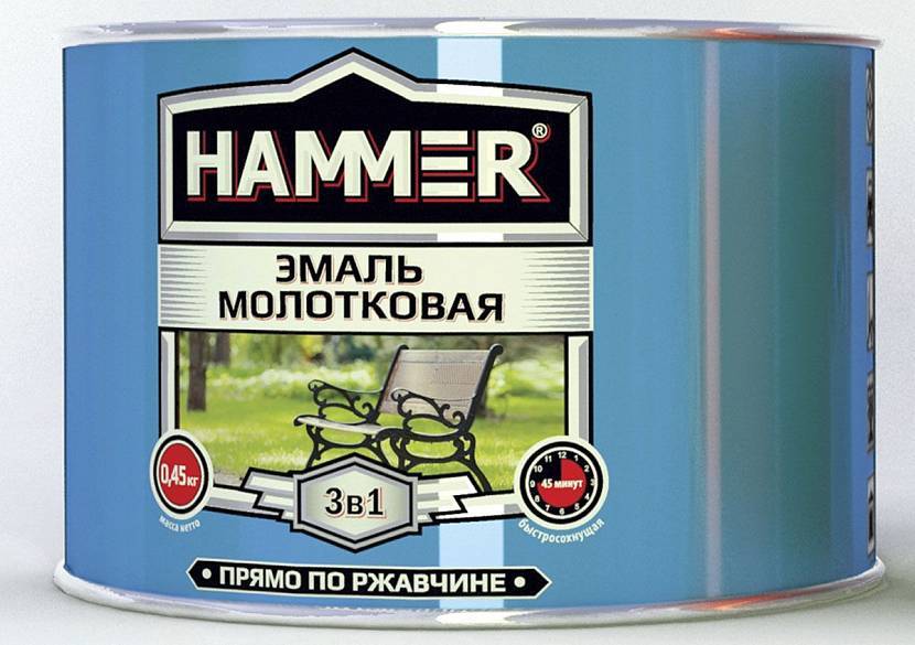 - Молотковая. Своё название этот материал получил лишь потому, что после нанесения на поверхности металла образуется шероховатая плёнка. Такое ощущение, что по металлической поверхности били маленьким молотком. Но у этого состава есть один большой плюс – он прекрасно срывает под собой все недостатки.