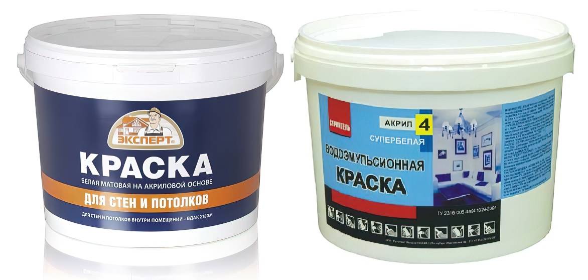 «Эксперт». Обладает хорошей структурой, после окрашивания потолки выглядят идеально белыми и гладкими. Также она обладает быстрым высыханием, не теряет цвет со временем, не имеет запаха и подходит для любых поверхностей. Стоимость краски за 14 кг составляет 850 рублей.