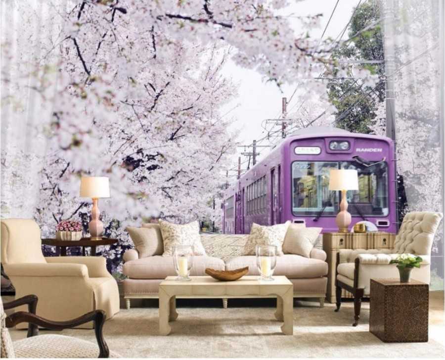 Чем проще и натуральнее обои тем лучше для этого стиля. Декоративный акцент заключается в ярком цветочном орнаменте выполненном в светлом теплом цвете.Могут использованы фотообои с изображением природы Прованса. Такие красивые обои в зал подойдут, как для квартиры, так и для загородного дома.