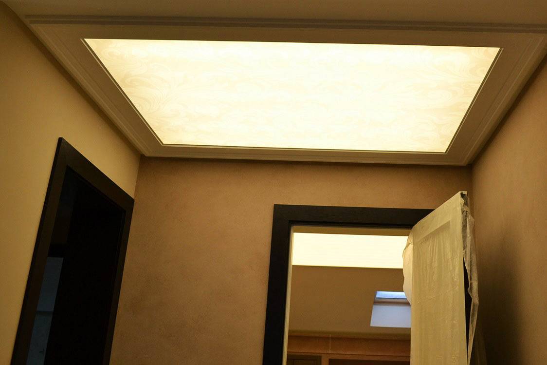 Обычно стараются закрепить люстру (или другой светильник), являющуюся основным источником освещения комнаты, так, чтобы ее масса приходилась непосредственно на потолок, а не на гипсокартонные уровни. В них, как правило, используются точечные встраиваемые светильники. В них могут использоваться как светодиодные лампы, так и галогенные, люминесцентные и обычные лампы накаливания.