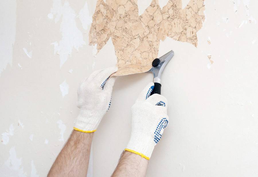 - Удаляют потенциально опасную с точки зрения развития микроорганизмов отделку: обои и отслоившуюся краску. Обои легко снимаются, будучи пропитанными водой.