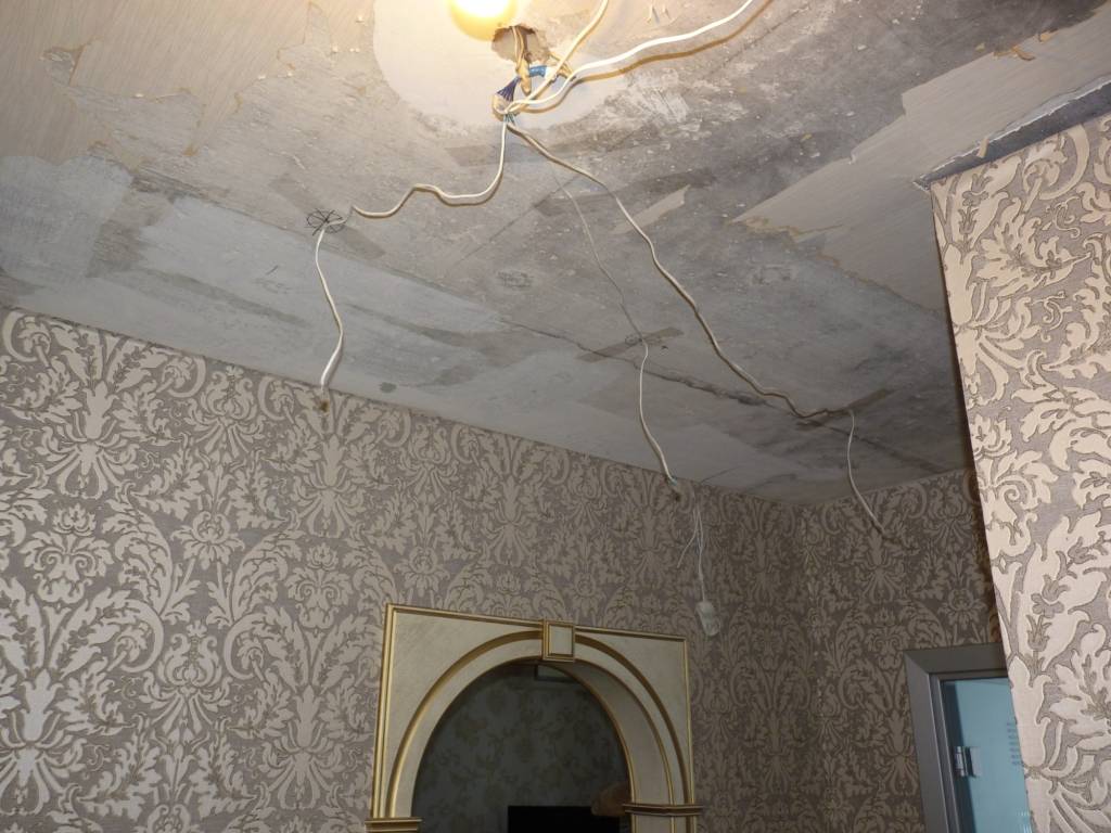 Есть у мела и определенные недостатки. Прежде всего, это покрытие склонно «сыпаться»: мелкие частицы мела образуют белую пыль, которая станет пачкать одежду и пальцы при случайном прикосновении. Также меловая побелка боится сырости: после протечки потолок может обвалиться кусками, после чего останется только счищать весь слой и белить заново.
