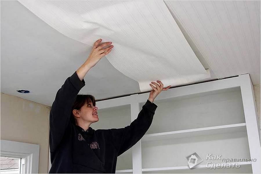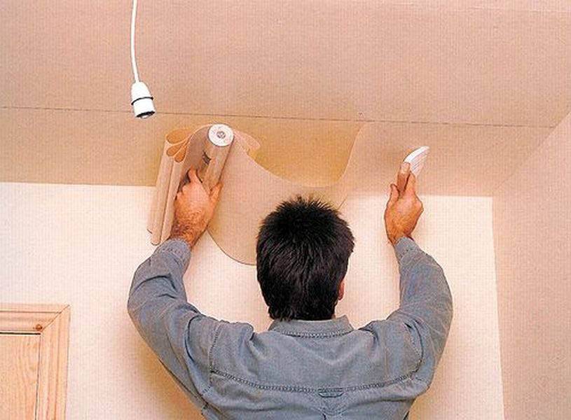 При ремонте квартиры на данном этапе важно, чтобы комната была закрыта, а внутри помещения было тепло и влажно. Только в этом случае обои на потолке хорошо высохнут