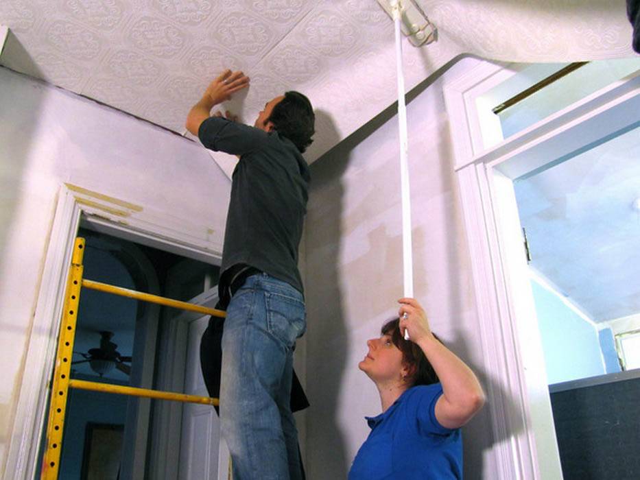 Перед тем, как поклеить обои на потолок своими руками, необходимо правильно подготовить рабочую поверхность.