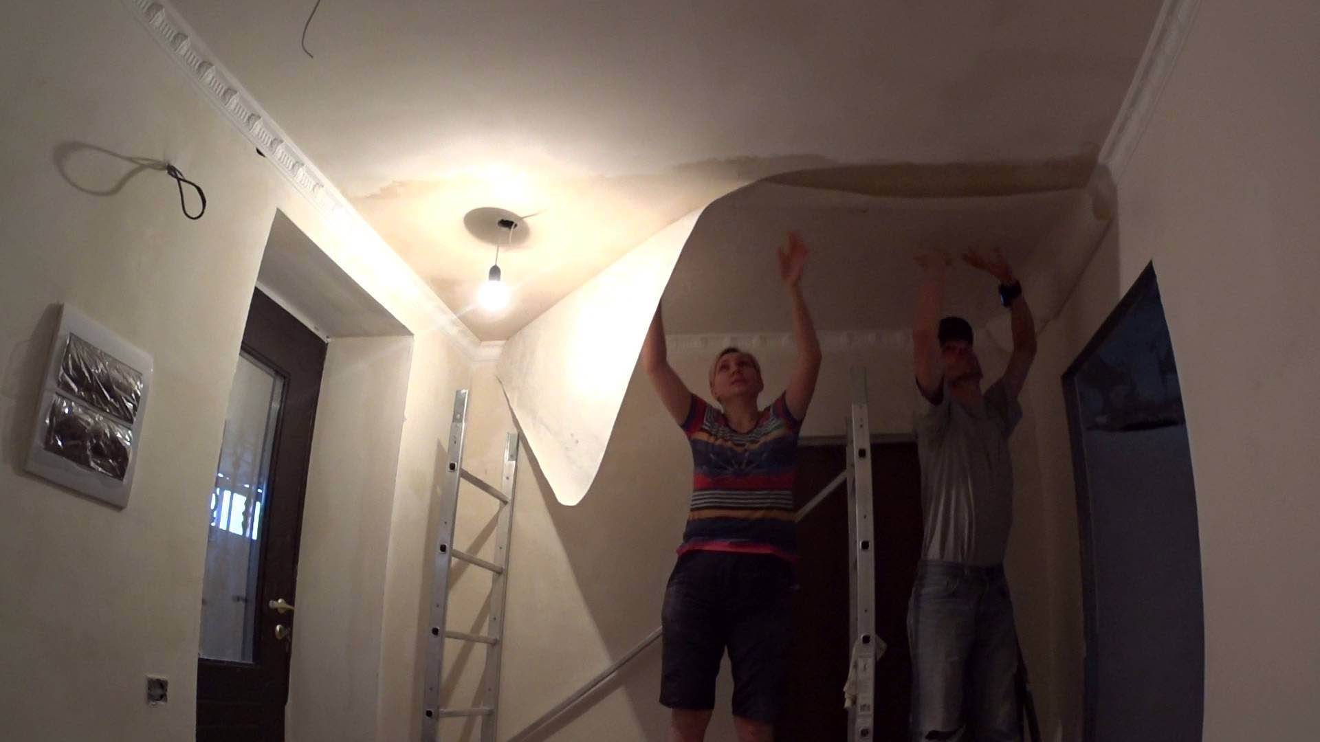 - обои можно наклеить самостоятельно, а для установки натяжного потолка потребуются услуги специалистов с необходимым для выполнения работ оборудованием.