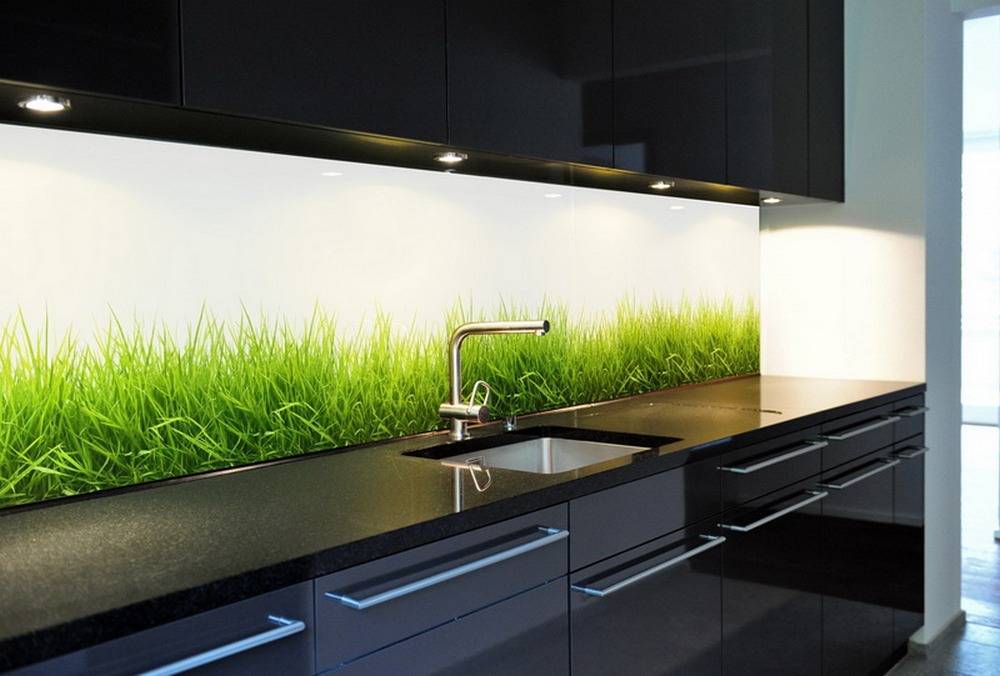 Стеклянный фартук с фотопечатью позволяет создать любой рисунок по желанию своего будущего обладателя. Прозрачная поверхность прекрасно покажет отделку этой зоны, сделав фартук практически незаметной поверхностью.