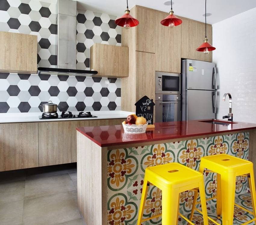 Выбор цвета и дизайна керамической плитки полностью зависит от ваших желаний. Кто-то предпочитает, чтобы плитка сочеталась с полом, кто-то – с другими элементами кухни. Еще можно выбрать оригинальный рисунок и превратить фартук в картину. Правильно подобранный узор поможет передать стиль определенной культуры или страны. При желании, на плитке можно сделать даже фотопечать любого рисунка! Говоря о дизайнерских трендах, отметим, что в последнее время популярность набирает узор-мозайка из плитки.