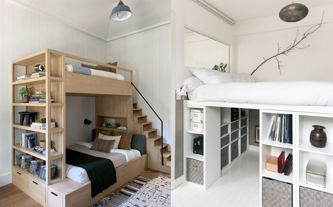 Ещё одно гениальное решение для тесных квартир – кровать-чердак, под которой располагаются уже не ящики, а целый шкаф или стеллаж. Помимо вместительной конструкции для одежды или книг, под кроватью можно разместить стол или диван для гостей.