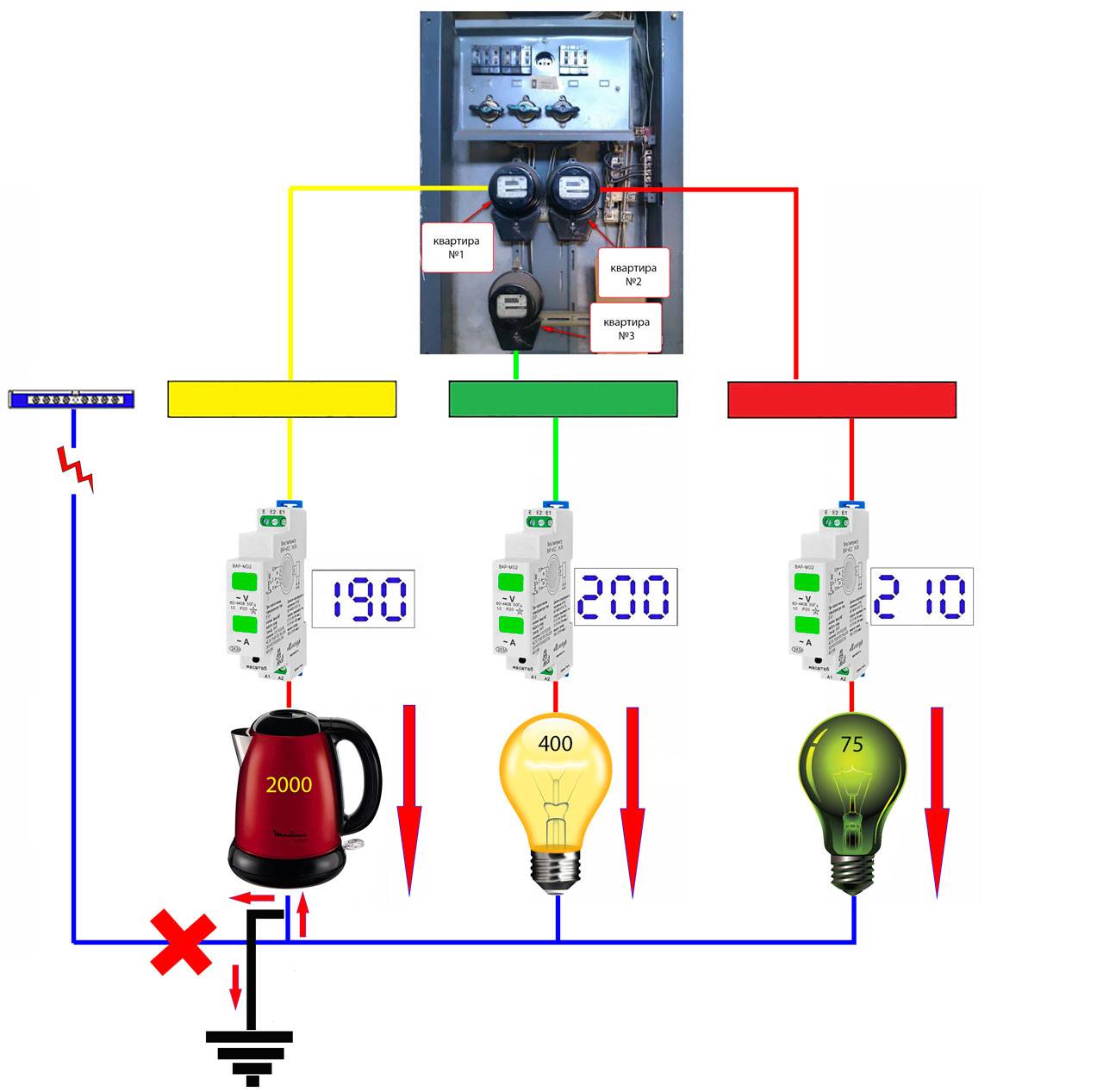 В итоге при очередном обрыве нейтрали, все заземленное электрооборудование у вас дома окажется под напряжением. Никакой земли то уже нет. А потенциал фазы начнет гулять по корпусам приборов.